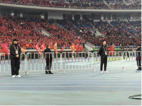 赛场内的学生志愿者,按照组委会工作人员要求,快速到位,站立昂首挺胸,精神十足,隔离带拉得笔直,有效协助维护了赛场内的采访秩序。