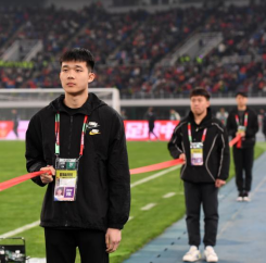 必赢的30名志愿者按照岗位分成两组,一组在赛场内拉隔离带、维护赛场采访秩序,一组在新闻发布厅、媒体看台区、混合采访区、餐饮区负责首发名单的接收与传递、储物柜管理、设备检查、秩序引导、收发物资、机动协调等工作。