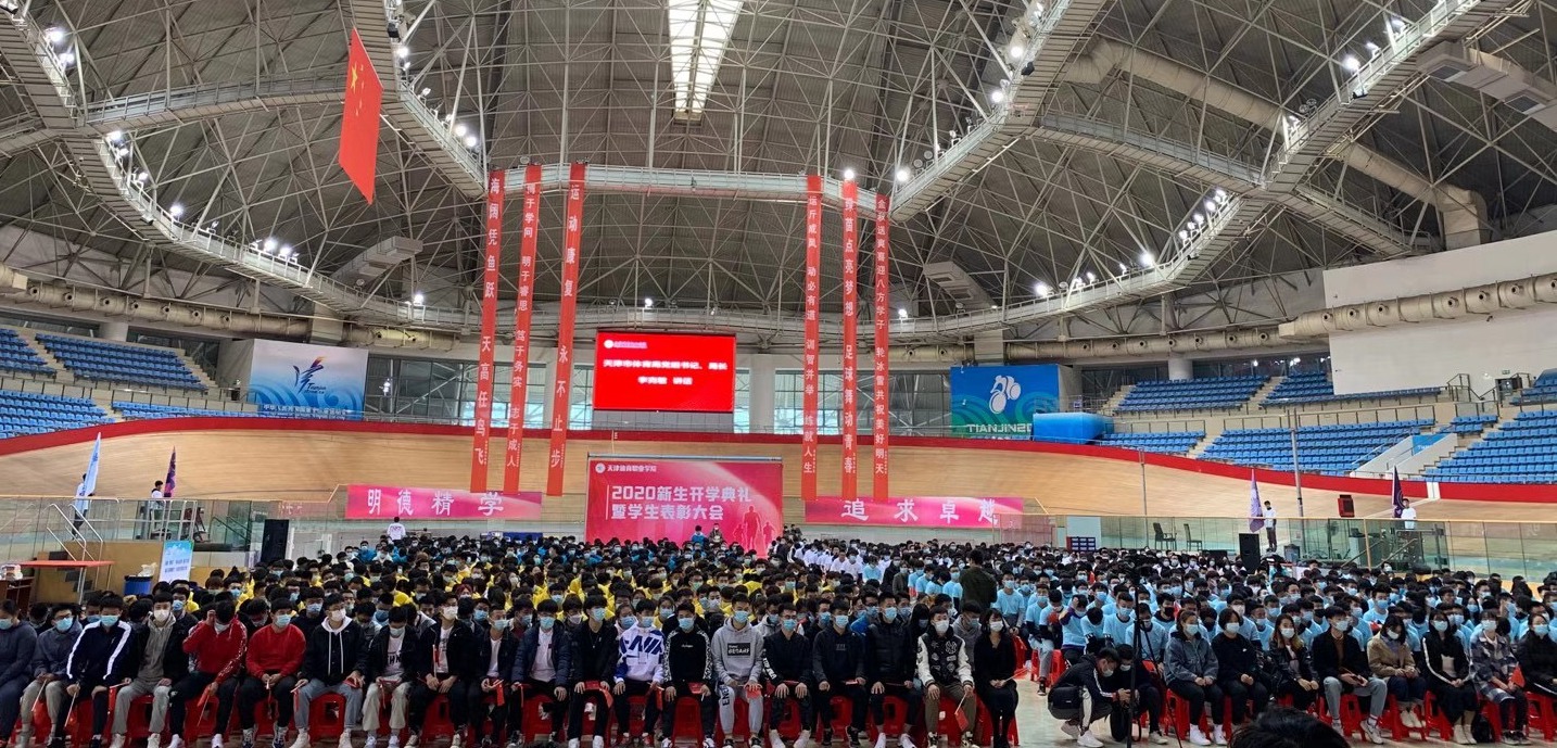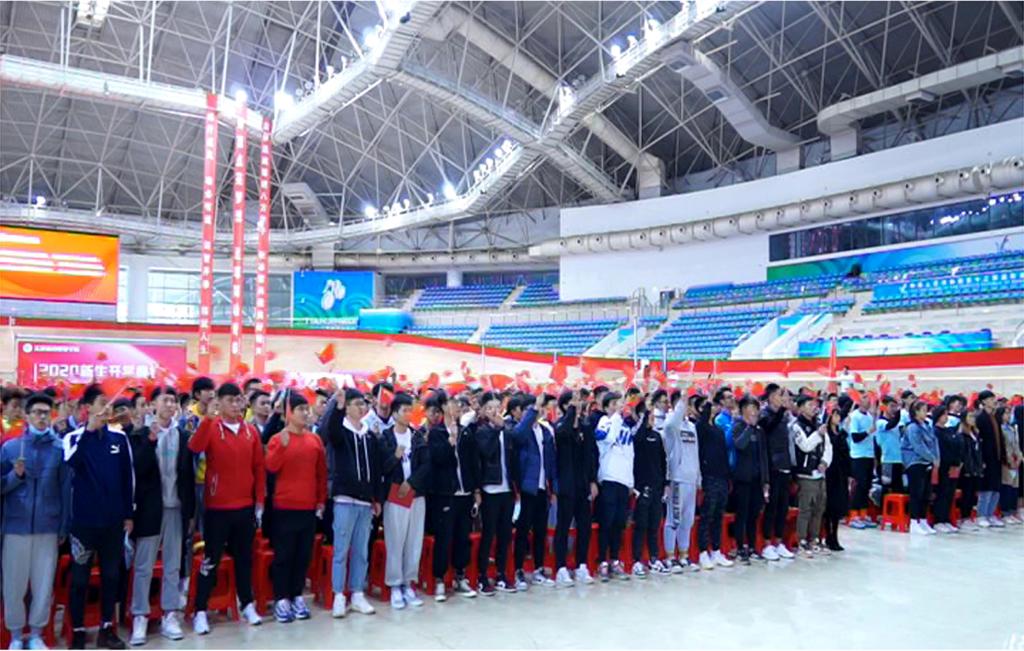 金秋十月,金果飘香。10月23日上午,必赢3003no1线路检测中心2020级新生开学典礼暨表彰大会在团泊体育中心自行车馆隆重举行,来自全国各地的1200余名新生共赴盛典,开启大学生活新征程。市体育局局长、党组书记李克敏,党组成员、副局长李桂峰,局办公室、宣教法规处相关同志,体育产业协会、企业代表及学院全体领导班子出席典礼,典礼由院党委书记王伟主持。