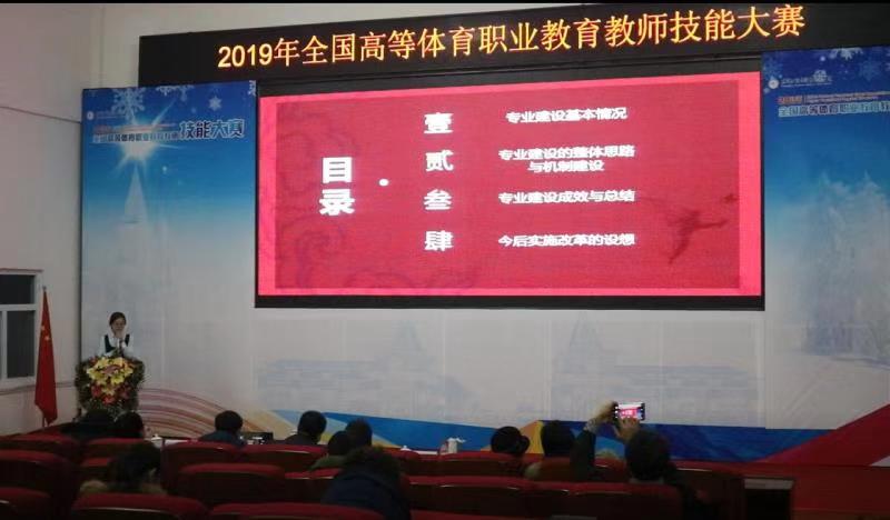 2019年12月9日至12月14日,由国家体育总局科教司、全国体育职业教育教学指导委员会主办,黑龙江冰雪体育职业学院承办的2019年全国高等体育职业教育教师技能大赛在黑龙江哈尔滨举行。本次赛事共设说专业比赛、说课程比赛、信息化教学课件制作比赛及教学能力比赛等4个竞赛项目。来自全国各地的37支高职院校代表队共147名选手参赛。其中,说专业比赛有32支代表队40人参赛;说课程比赛有33支代表队51人参赛;信息化教学课件制作比赛有18支代表队23人参赛;教学能力比赛有27支代表队33人参赛。学院教务处前期通过举办《2019年必赢3003no1线路检测中心教师体育教育教学大赛》选拔出6名教师参加全部4个赛项的角逐。本次比赛我院首次参加,最终在本次大赛中获得3个一等奖,2个二等奖,1个三等奖的骄人成绩。