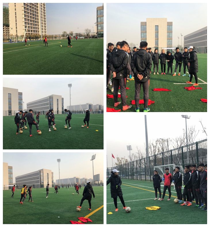 下午的实践课程在学院足球场进行,王婷婷带领学生们从教练员指导训练的角度进行足球技术、技能和对抗部分的讲解和实践。学生们热情高涨,全心投入实践,不但收获各种青少年足球的训练方法和内容,并通过实践课程极大地提高了自身的足球技术能力。