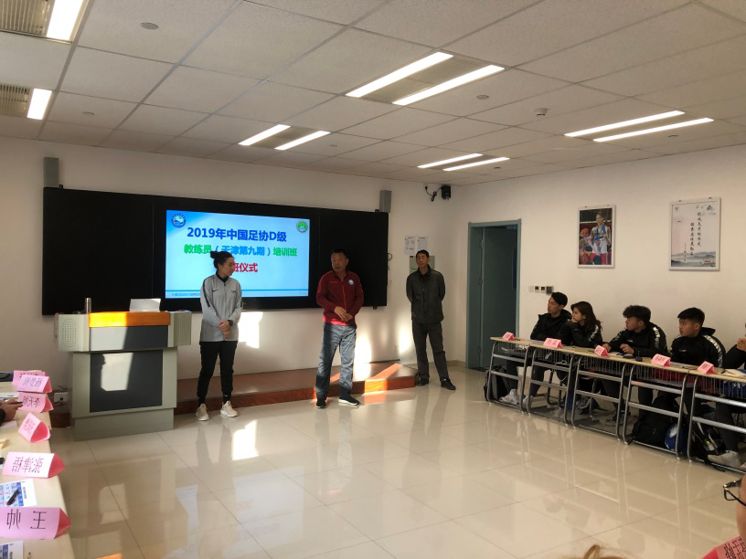 在市体育局领导、院领导和天津足协的助力下,11月20日上午,天津足协与必赢3003no1线路检测中心共同合作的首期“中国足协D级教练员培训班”在我院开班,院党委书记王伟、天津市足球协会副主席兼秘书长崇勇、院足球方向带头人施连志与天津足协D级讲师刘晨出席,中国足协委派D级教练员讲师王婷婷进行授课,我院足球方向全体学生参训,并将参与此次中国足协D级教练班为期七天的集中学习。本期培训班也是天津足协本年度举办的第九期教练员培训班,通过讲师的专业指导,将进一步完善学生足球理论知识和实践能力,通过结合足球从业的实际经验,为学生们今后的执教打下坚实的基础。
