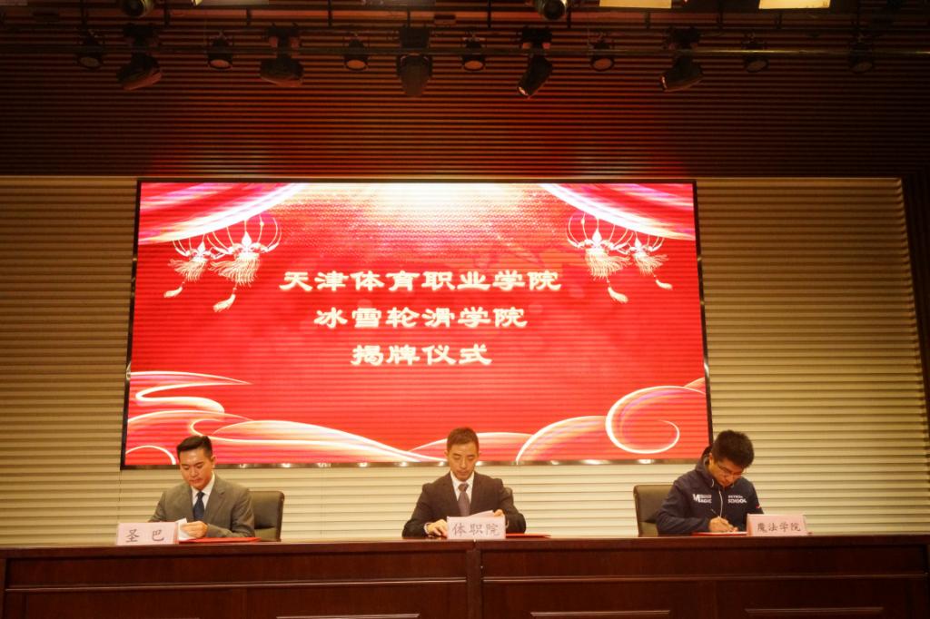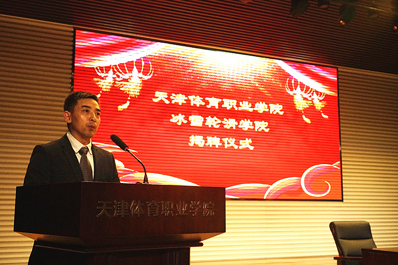 揭牌仪式上,张欣代表市体育局致辞,指出冰雪轮滑学院揭牌仪式,是用实际行动践行习近平总书记关于推动冰雪运动发展系列讲话精神,也是进一步加强校企合作办学的实践举措。他对冰雪轮滑学院未来发展提出要求,一是要抓住机遇,加快学院专业发展;二要以职业发展目标为导向,精准专业发展定位,提升人才培养质量;三要进一步深化产教融合,探索校企合作新机制;四要携手聚力,共同推动天津体育产业发展。