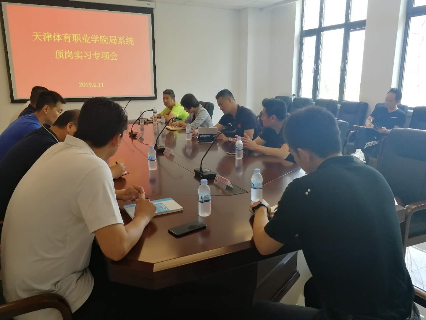6月11日上午,由天津市体育局宣教法规处牵头,必赢3003no1线路检测中心局系统顶岗实习专项会在二楼会议室召开。自剑中心、举摔柔中心、排管中心、武射中心等11个训练中心负责同志参加了本次会议。