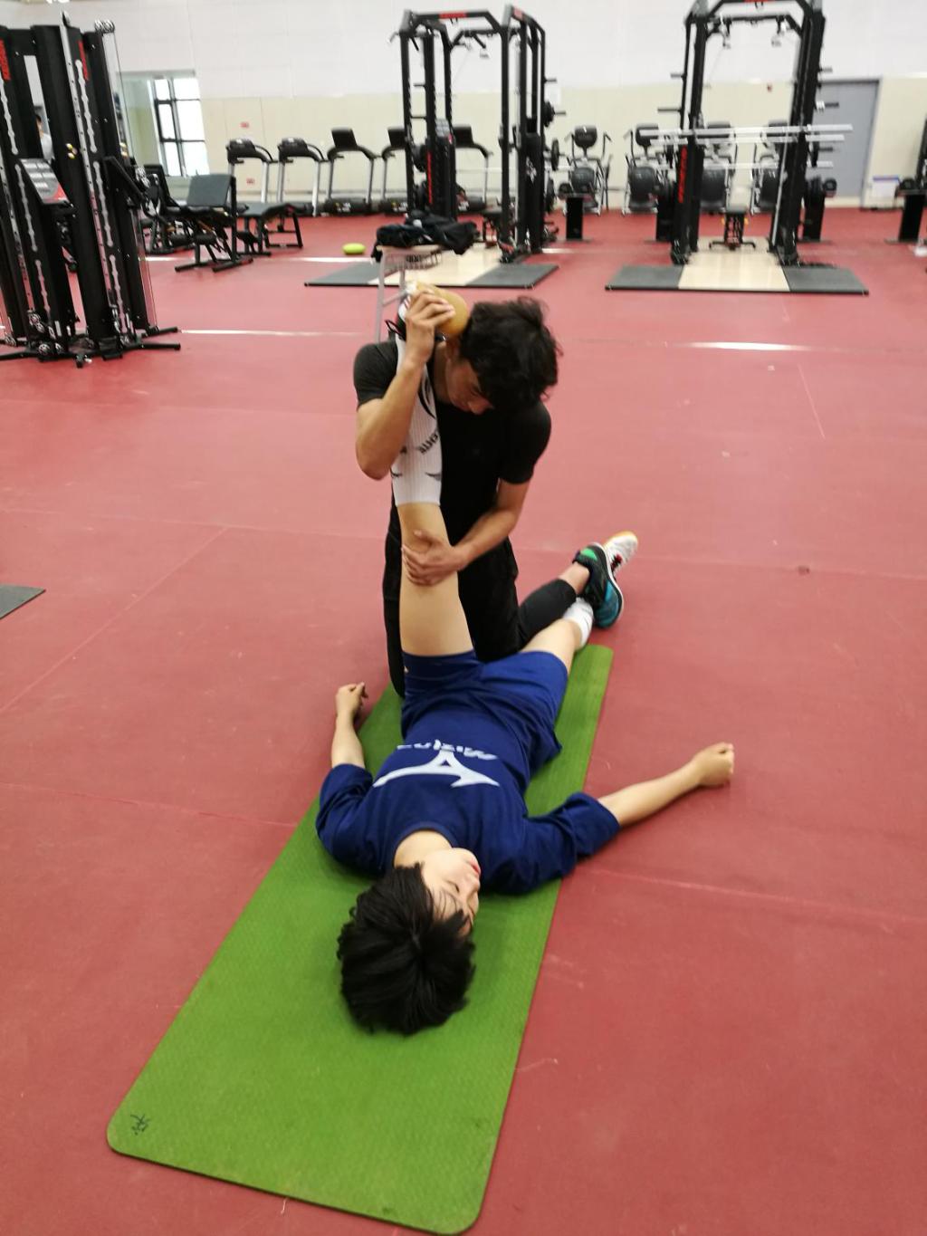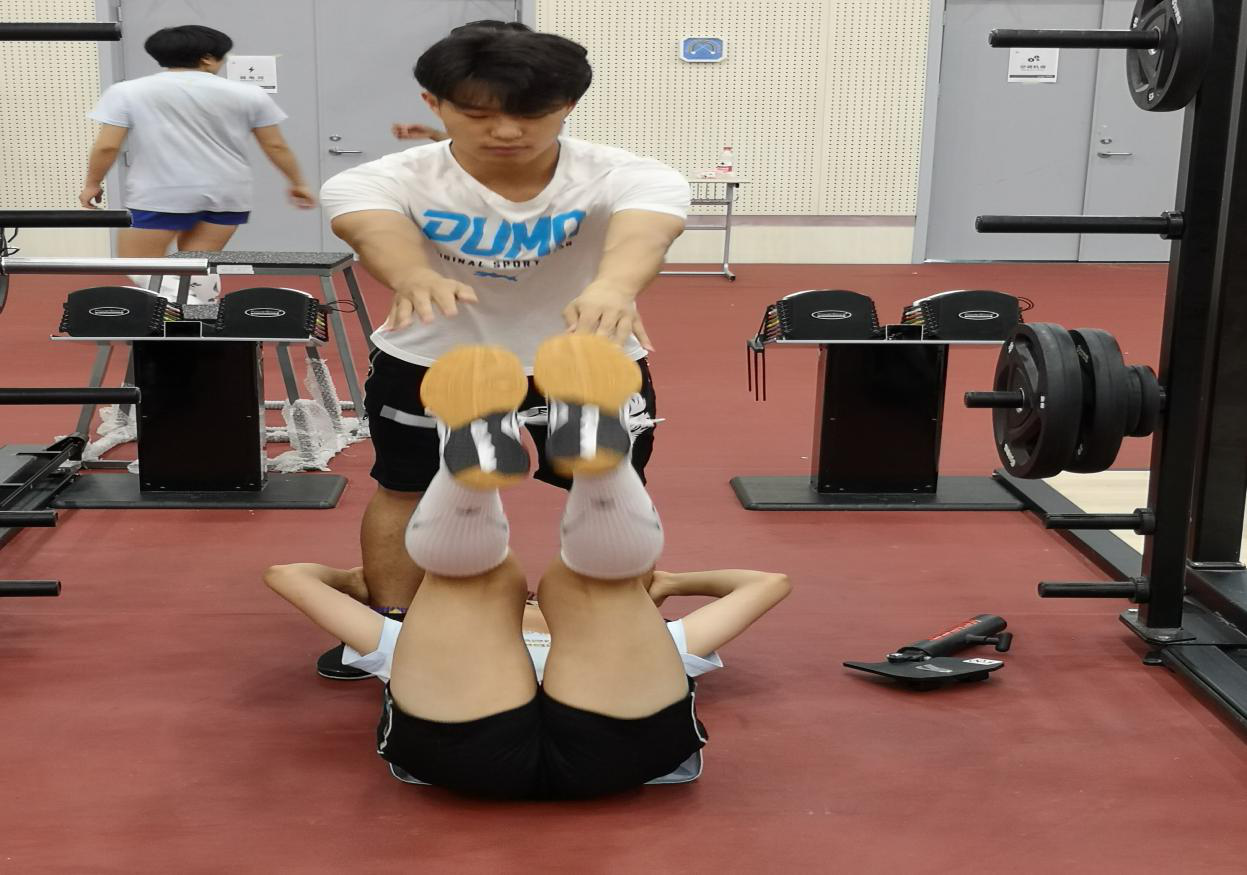 为贯彻落实天津市体育局党委《进一步学习天津女排精神活动的通知》要求,以及市教育两委的指示精神,加强学生们的思想政治教育和职业道德教育工作,体育保健与康复系的辅导员王虎与学生刘子宁、卫梦晨、王泽路师生四人每天下午参与并协助青年女排在体能中心的体能训练课及训练后的恢复。
