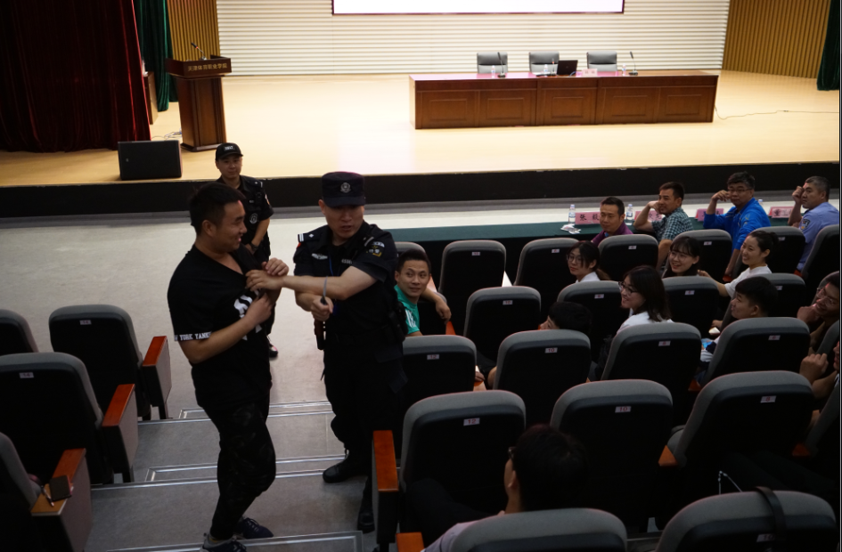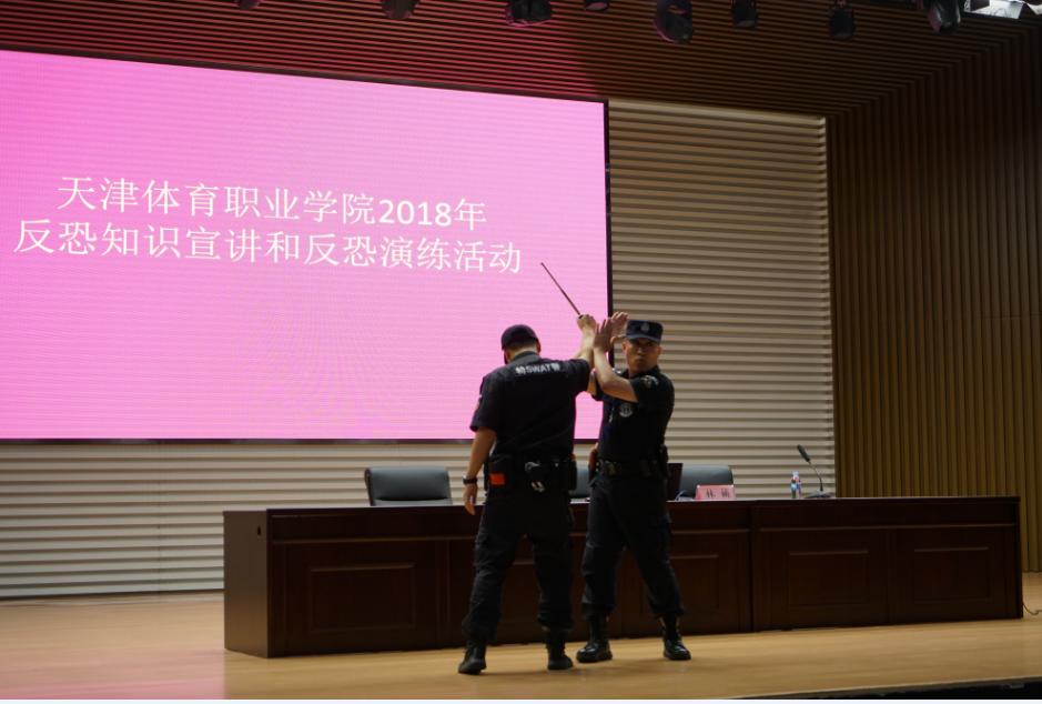 为进一步增强广大师生应对突发暴恐事件的防范意识,提升应对恐怖袭击事件的有效处置能力,确保学校安全稳定,努力实现“平安校园”的总体目标,2018年6月13日,必赢3003no1线路检测中心开展反恐知识宣讲和反恐演练活动,学院党委书记王伟、院长刘钦龙、副院长张毅出席,全院师生、物业工作人员参加。活动邀请了天津市反恐怖工作防范应急支队林楠警官、静海区分局特警支队二大队大队长付雪东警官和民警王明坤为大家进行专业知识宣讲和反恐演练。
