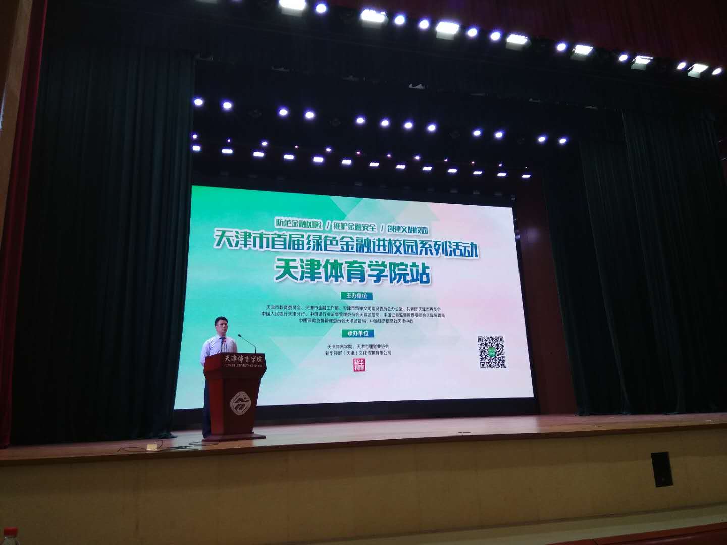 2018年5月11日,根据市教委《关于做好“金融知识进校园公开课”组织工作的通知》要求,我院体育运营与管理系全体学生在学生处副处长赵雪的带领下参加由天津市教委、市金融局、市文明办、团市委、中国人民银行天津分行、天津银监局、天津证监局、天津保监局、新华社中国经济信息社天津中心共同举办“防范金融风险 维护金融安全 创建文明校园——天津市首届绿色金融进校园系列活动金融知识进校园公开课天津体育学院站”的活动。