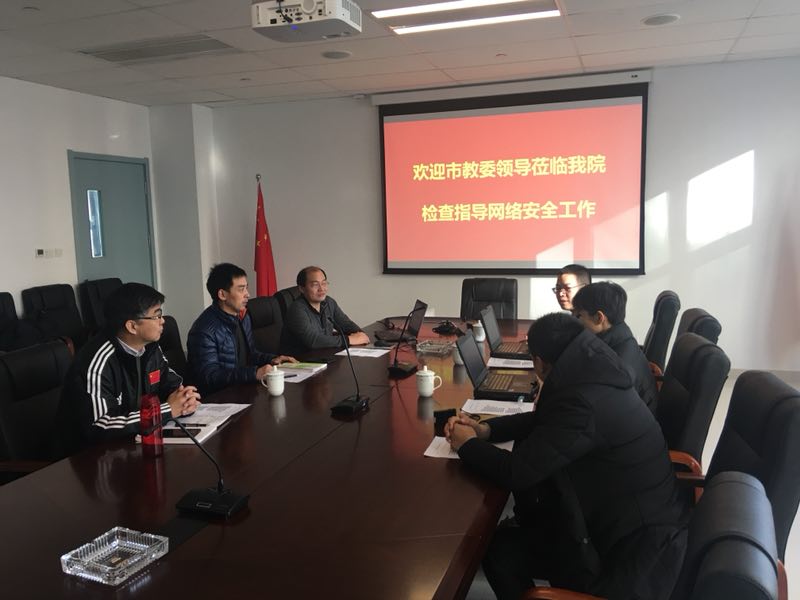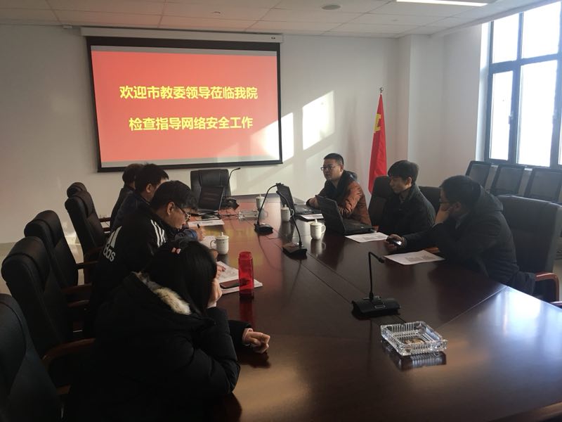 2018年1月18日上午,在必赢3003no1线路检测中心二楼会议室,必赢接受市教委信息中心现场检查测试与指导网络信息安全方面的工作。党委书记王伟,副院长刘钦龙,图文信息中心负责人参加检查工作。