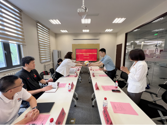 座谈会上,汽车工程学院党委书记罗思路对我院一行的到访表示欢迎,简要介绍了学院的发展沿革、近年来的主要办学成果和党建工作情况。第二批天津市高校专职组织员导航站负责人谷旭老师分享了汽车工程学院党委扎实推进“一体两翼领航工程”,实施“八大红色行动”,充分发挥示范引领作用,提升党建育人质量的品牌化建设成果。随后,双方就基层党建工作、学生党员发展等工作深入交流、共同探讨。学院党委书记杨军将一枚载有奥运冠军和天津女排队员、教练员签名的纪念排球赠予对方表示感谢。双方就日后加强在党建品牌创建、党建带团建等方面的合作,共同探索党建工作的新思路、新方法和新途径等方面提出期望。