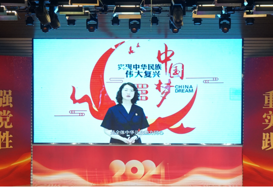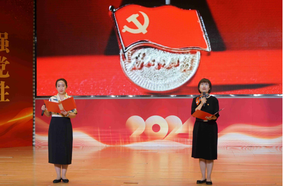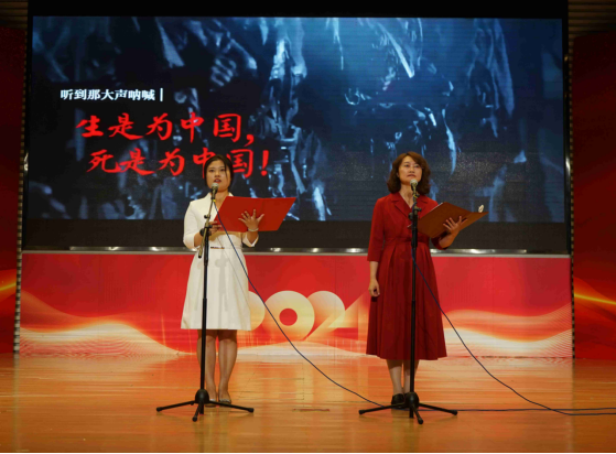 学院党委书记杨军、学生处教师王慧朗诵《中国共产党百年述职报告》