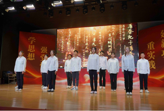 活动以“理论宣讲+文艺演出”形式展现,由学院领导班子成员讲授微党课,带领全体师生回溯历史,从新民主主义革命时期、社会主义革命和建设时期、改革开放和社会主义现代化建设新时期到中国特色社会主义新时代,生动且深刻地展示了中国共产党一经成立就把实现共产主义作为最高理想和最终目标,确立起为中国人民谋幸福、为中华民族谋复兴的初心和使命,将理论宣讲融入精心编排的文艺节目中,以师生喜闻乐见的文艺形式,传播好声音,唱响主旋律,打造“党建+大思政”的育人平台。