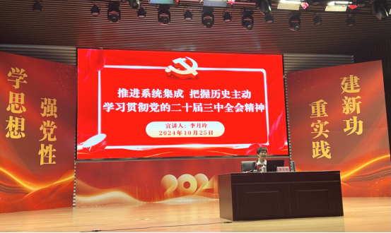 李月玲教授结合自身成长经历和感悟,以党的二十届三中全会《决定》的整体框架切入,围绕全会召开的时代背景与重大意义、全会精神的核心要义与重点把握以及学习贯彻全会精神的要求与举措三方面,用生动的语言和鲜活的案例,以“方位”“方向”“方法”三个维度深入浅出地从“为什么改”“往哪里改”“怎么改”对全会精神进行系统宣讲和深入阐释。